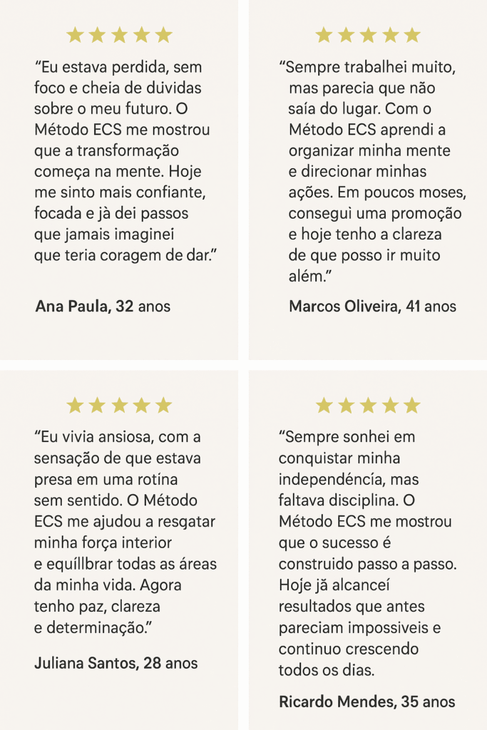 Foi desse propósito que surgiu o Método ECS — um caminho direto, lapidado, que une disciplina, mentalidade vencedora e inspiração diária para quem não se conforma com pouco.
